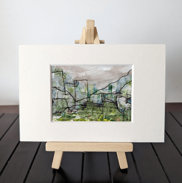 The Yorkshire series of miniature paintings is inspired by Yorkshire's beautiful and diverse landscapes. Being present in nature on its rugged moors, rolling dales, rocky outcrops and dramatic coastline never fails to evoke an emotional response in me. I use organic, expressive form and colour to consolidate both vista and sentiment in each.